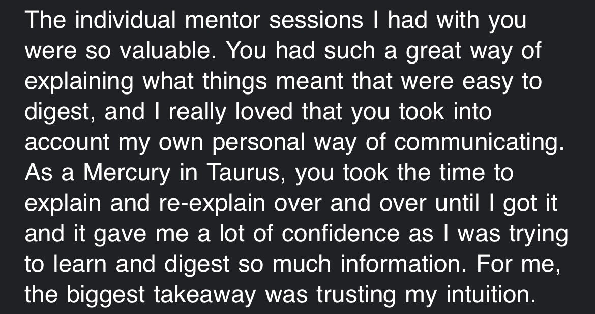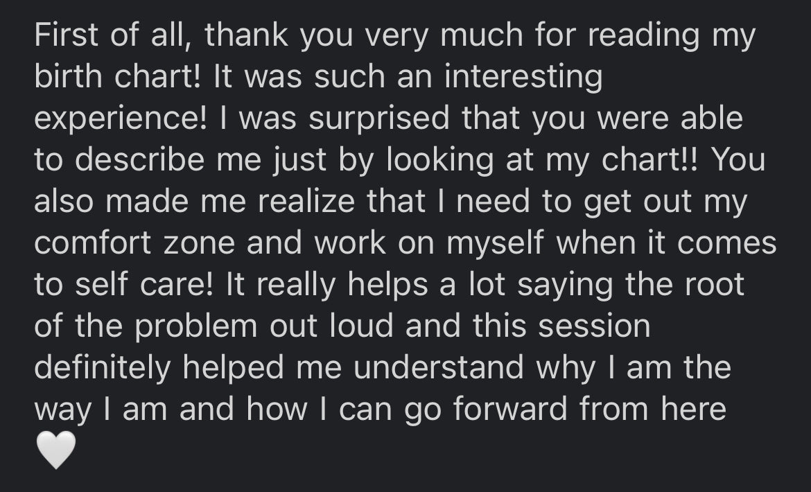 **Please note that these are not a teaching sessions - although you'll learn along the way! It's a space where your personal story takes centre stage. If you're seeking deeper education, I offer resources like my Astrology Mastery Academy for more structured learning.