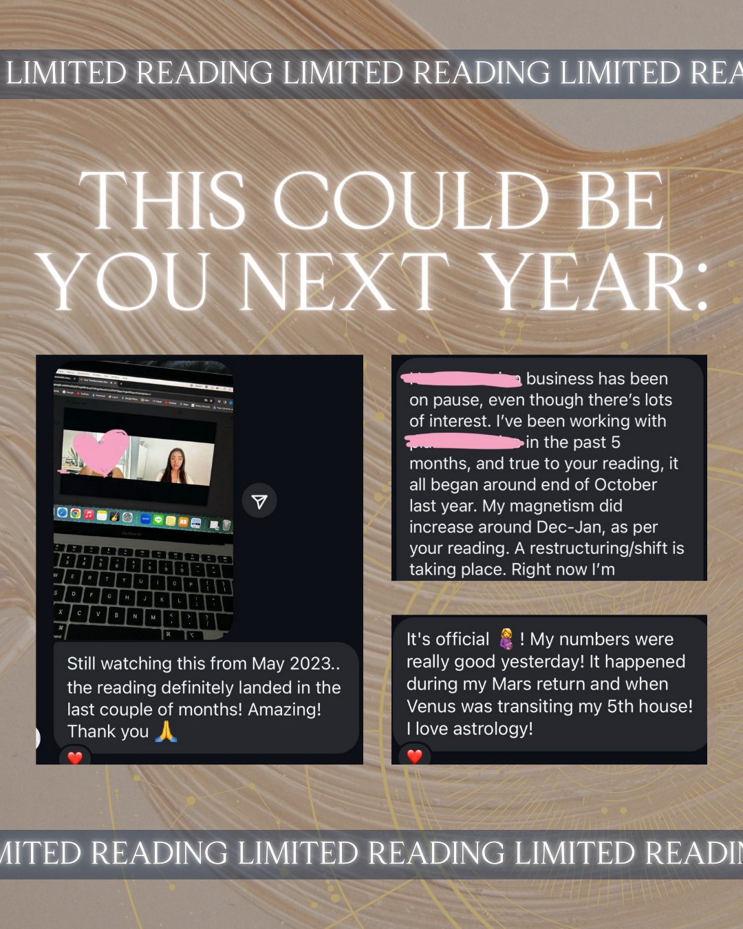 Honestly, horoscopes are useless - UNTIL you make them personal for YOUR chart. I'll be creating a timeline for you with specific key dates throughout the year when the planets align to support you in transforming, growing and creating the reality that you want to live!