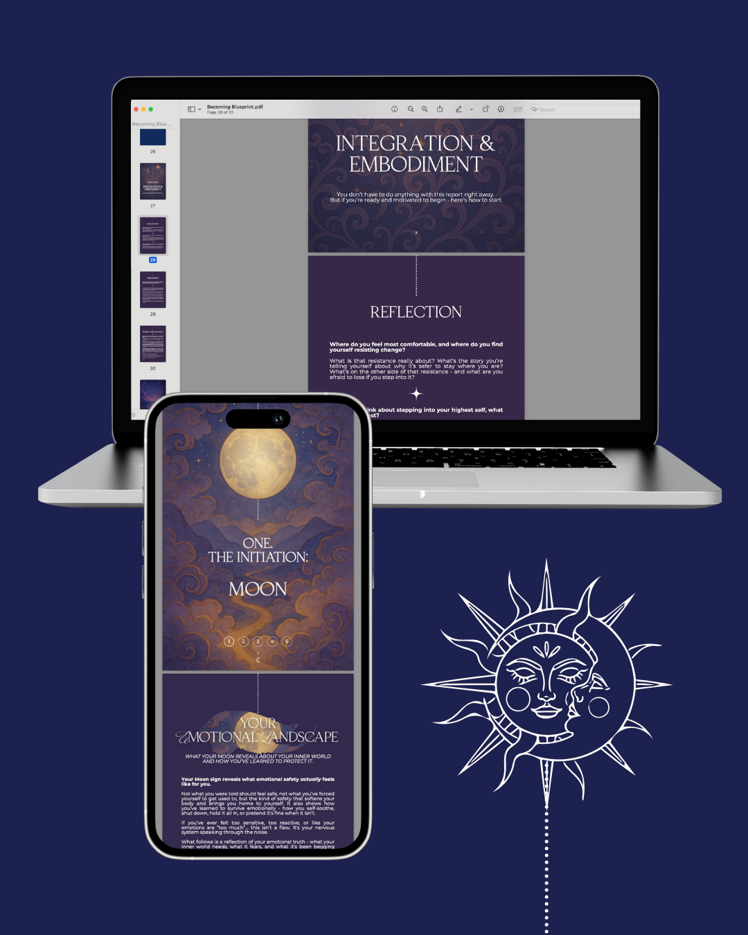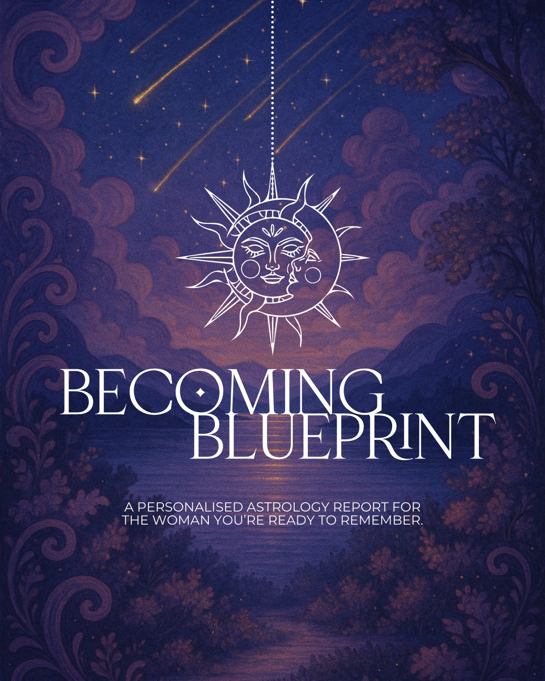 Your Becoming Blueprint: a personalised astrology report for the woman who's done performing, pleasing, playing small - and finally ready to remember who TF she is.