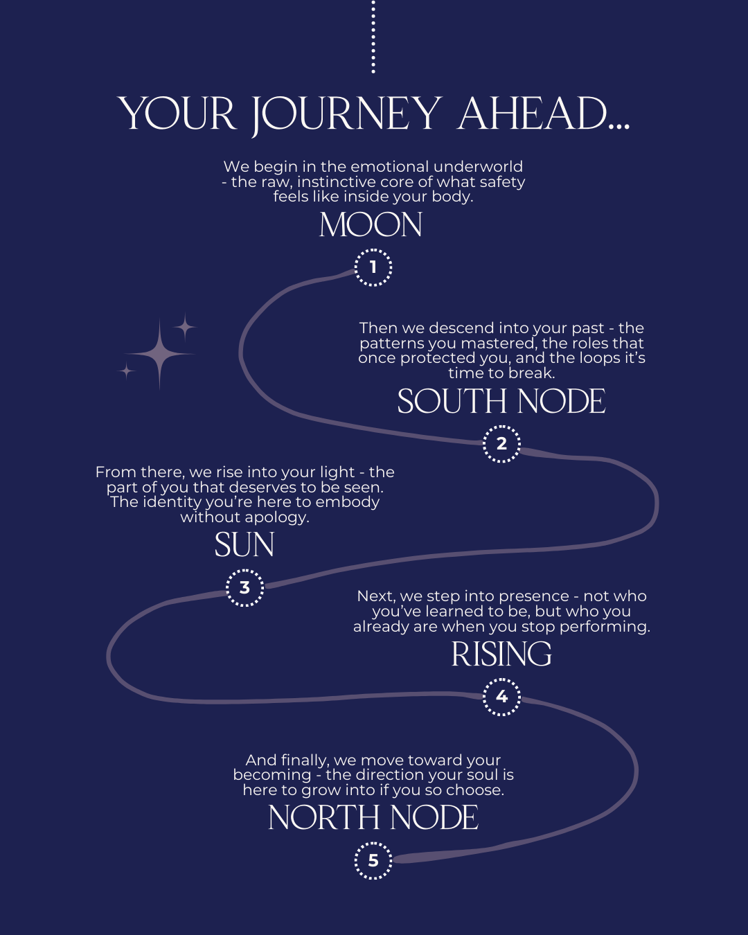 In this 30-page personalised, soul-reflective report, I’ll guide you through 5 key birth chart placements that matter most when it comes to coming back to yourself:
