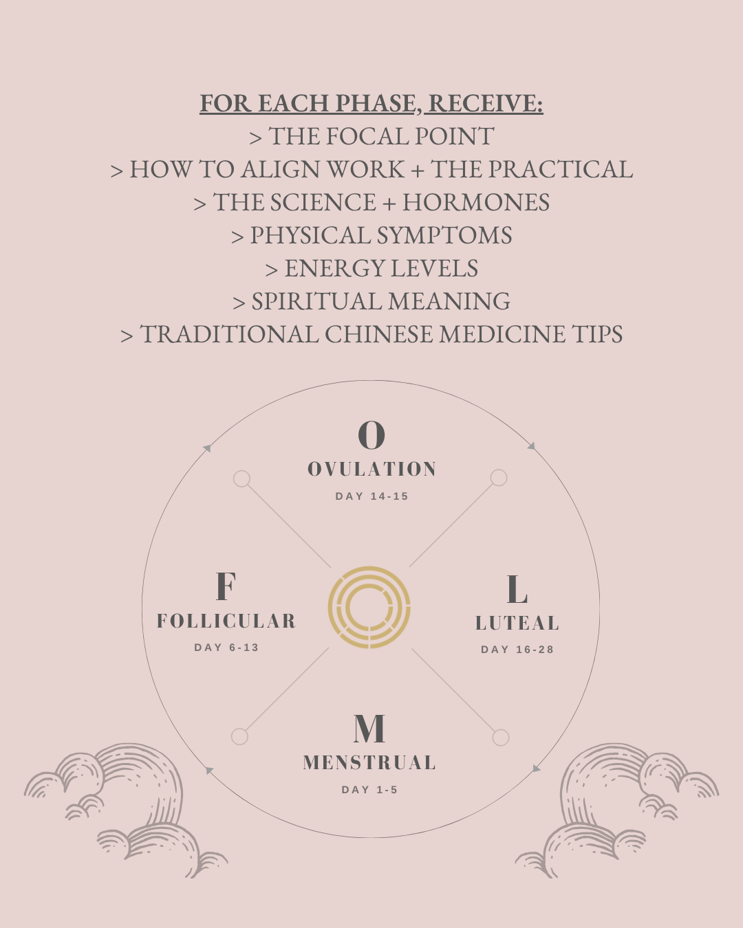 Creativity, libido, anxiety, fatigue, insomnia - all affected by the ebb and flow of your hormones. Plus... how it correlates to the spiritual meanings of each phase + Traditional Chinese Medicine tips to help your body adjust.